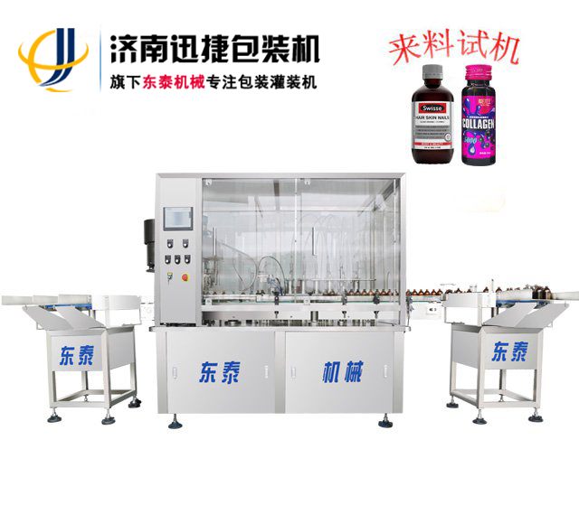 液體灌裝軋蓋機(jī)主要用于制藥廠小劑量的酊水,糖灌裝和軋蓋工序,只需一臺(tái)設(shè)備即可完成理瓶、輸瓶、定量灌裝、理蓋、送蓋、軋蓋等一系列復(fù)雜工序,而且在灌裝過程中,凡與藥物接觸的零部件均采用316L不銹鋼或PTFE制造,具有無瓶不灌裝,變頻調(diào)速等功能。